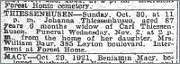 Death notice from the Milwaukee Sentinel newspaper October 1921.