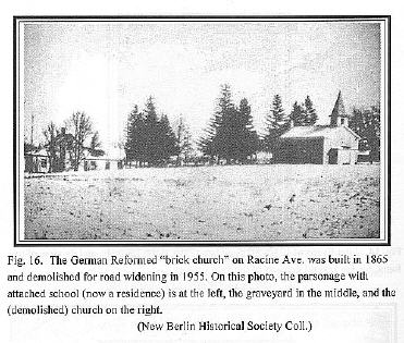 This is a close up photo of the “brick church” on Racine Avenue. The Thiessenhusens attended services here from about 1865 to 1880. Although the church and parsonage were demolished in 1955, the cemetery remains. The cemetery is now maintained by the New Berlin Historical Society. |