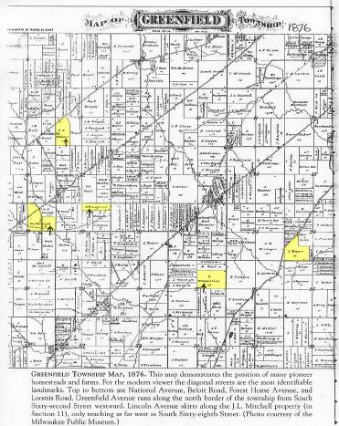 Greenfield Township, Milwaukee County, Wisconsin - Map 1876: The Peter N. Wollmer family farm is in section 8 (this is just east of the juncture of Oklahoma Avenue and National Avenue now). Peter N. Wollmer is Marie Thiesenhusen Wollmer’s father-in-law.